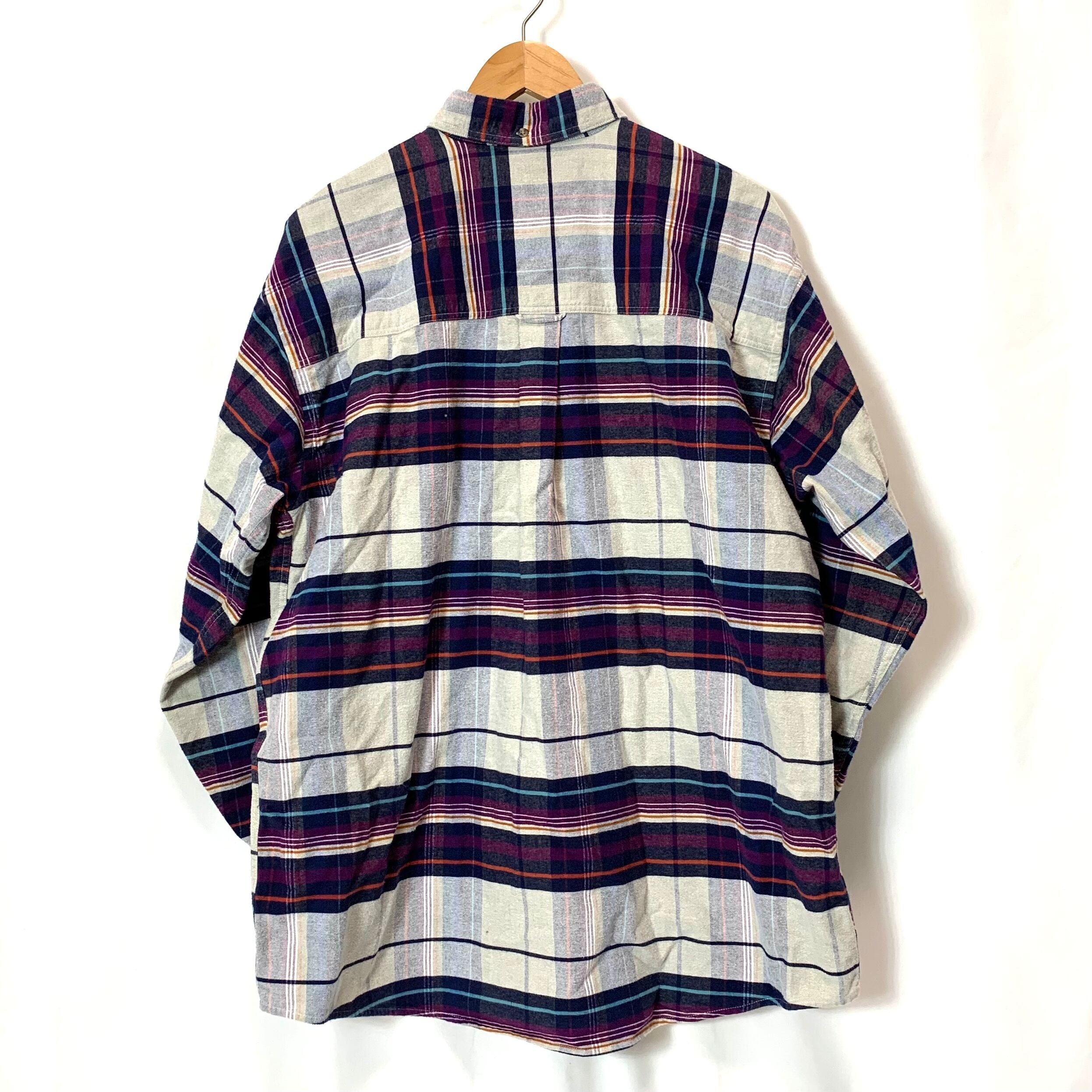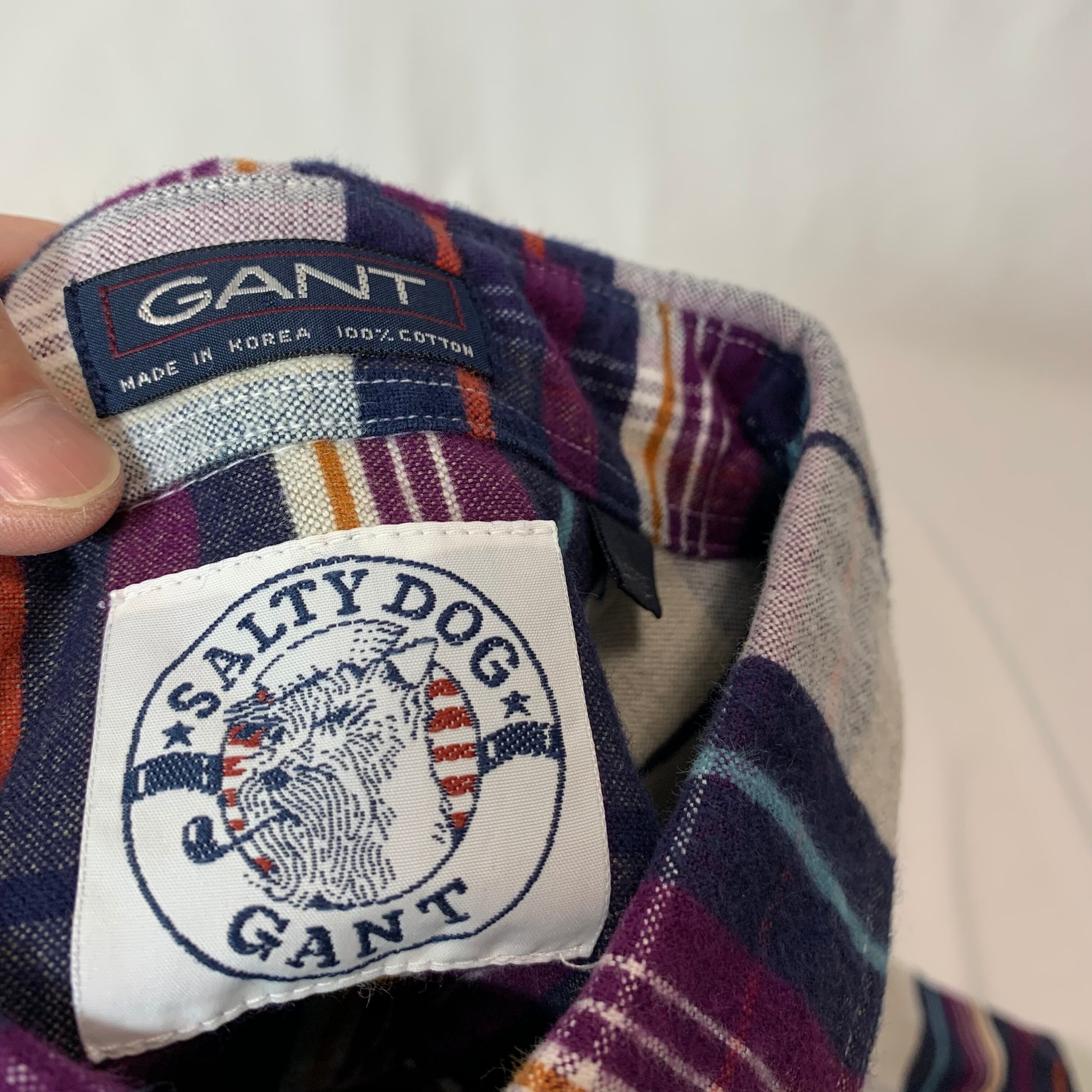 vintage old 90s GANT SALTY DOG 長袖 チェック柄 ネルシャツ メンズ size L ホワイト×ネイビー