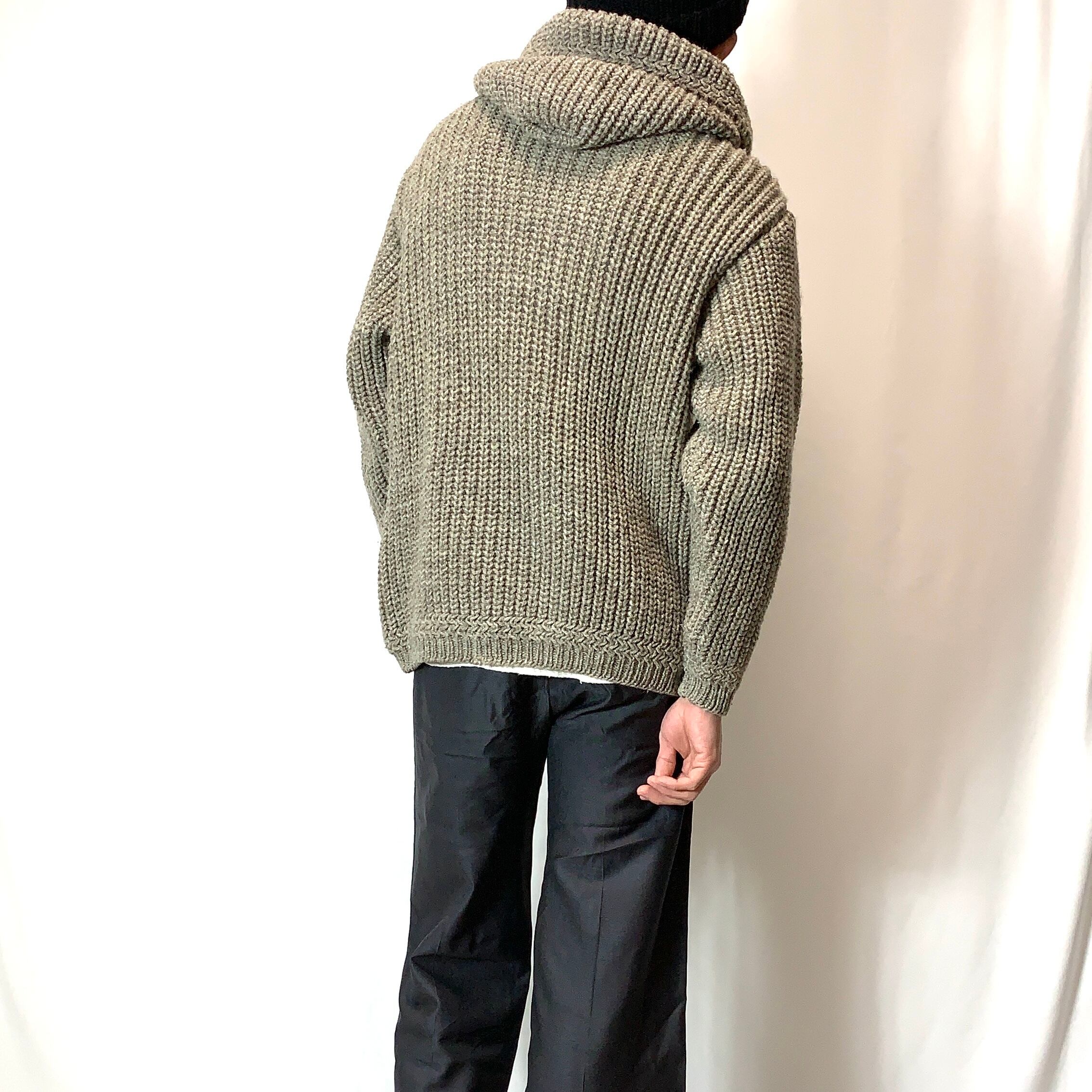 vintage old wool designknit sweater hoodie ウール デザインニット セーター フード付き メンズ レディース グレー