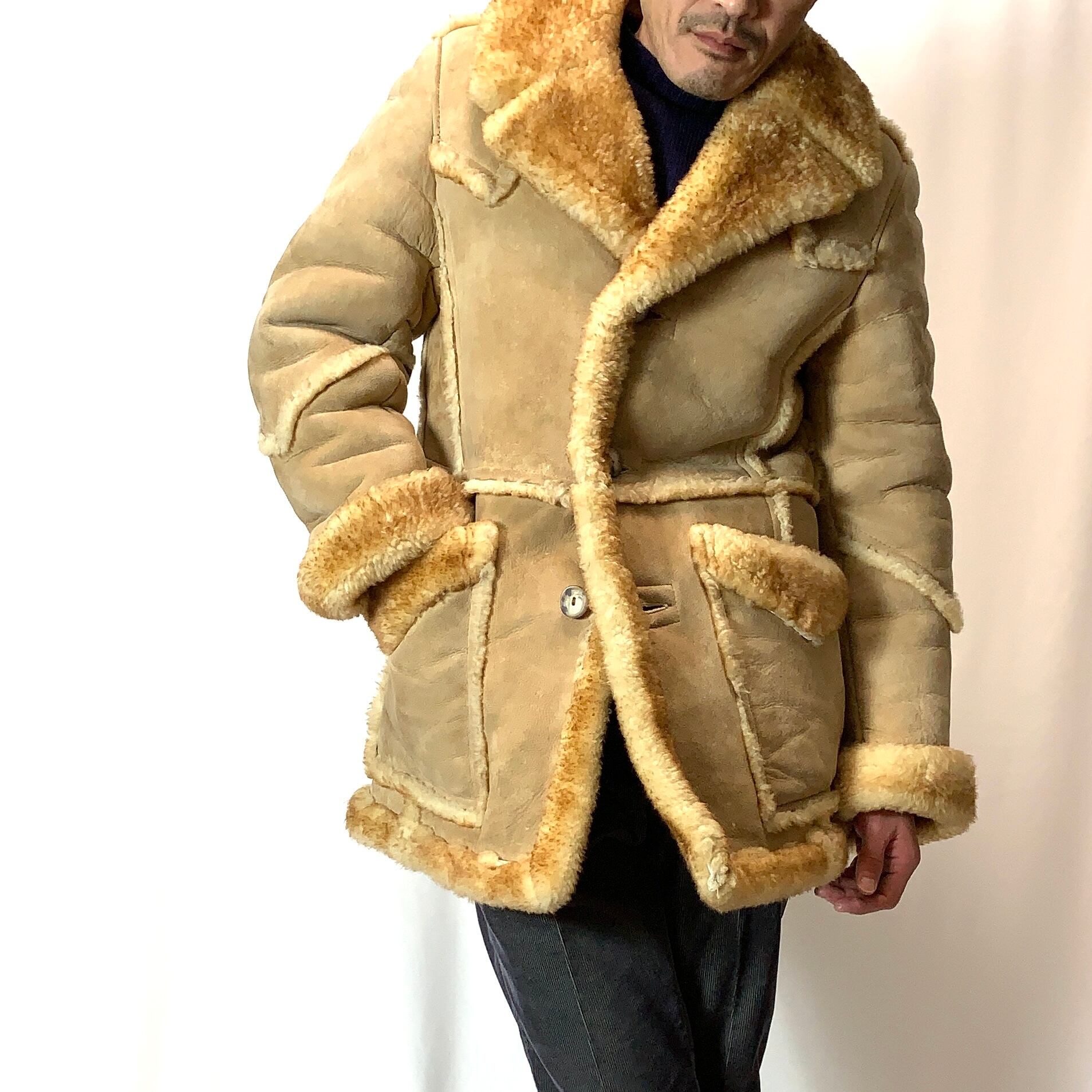 vintage old 70s mouton jacket ムートンジャケット メンズ レディース ベージュ SIZE 36