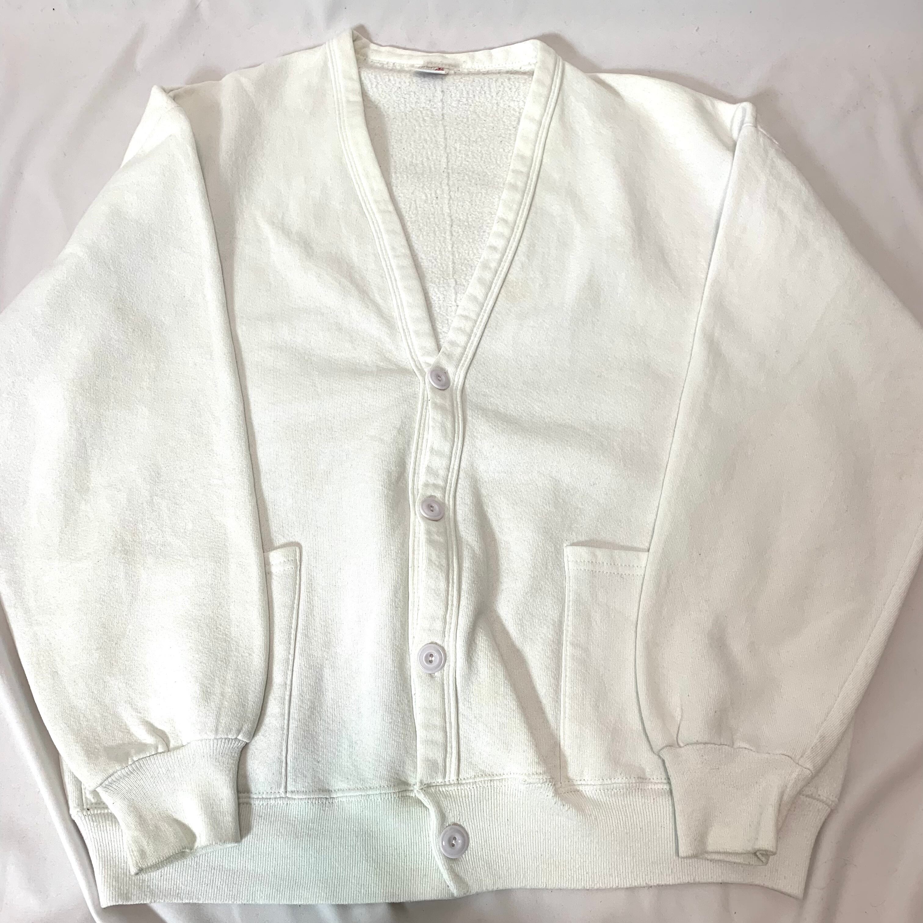 vintage old 80s sweat cardigan JERZEES MADE IN USA スウェットカーディガン ジャージーズ メンズ レディース ビンテージ ヴィンテージ アメリカ製 ホワイト 白 size ONE SIZE FITS ALL