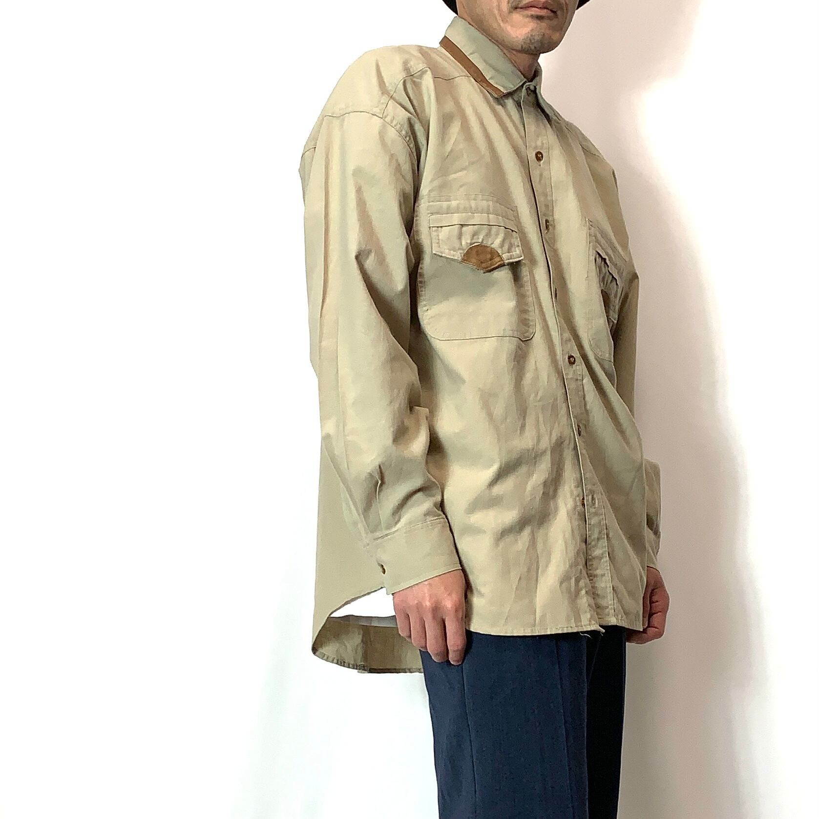 vintage old 90s GITANO Leather Switching Shirt ジターノ レザー切り替えシャツ ベージュ×ブラウン メンズ レディース SIZE XL ビンテージ ヴィンテージ