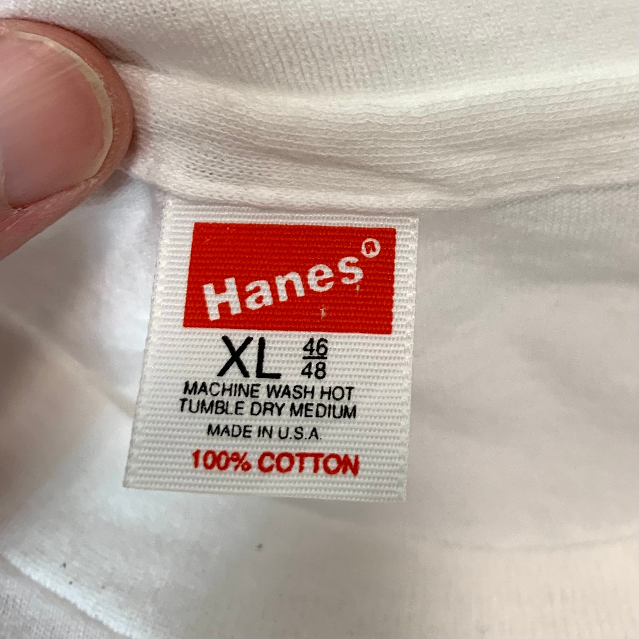 vintage 80s 90s print T-shirt Hanes MADE IN USAプリント Tシャツ ヘインズ メンズ レディース アメリカ製 ホワイト 白 size XL ビンテージ ヴィンテージ