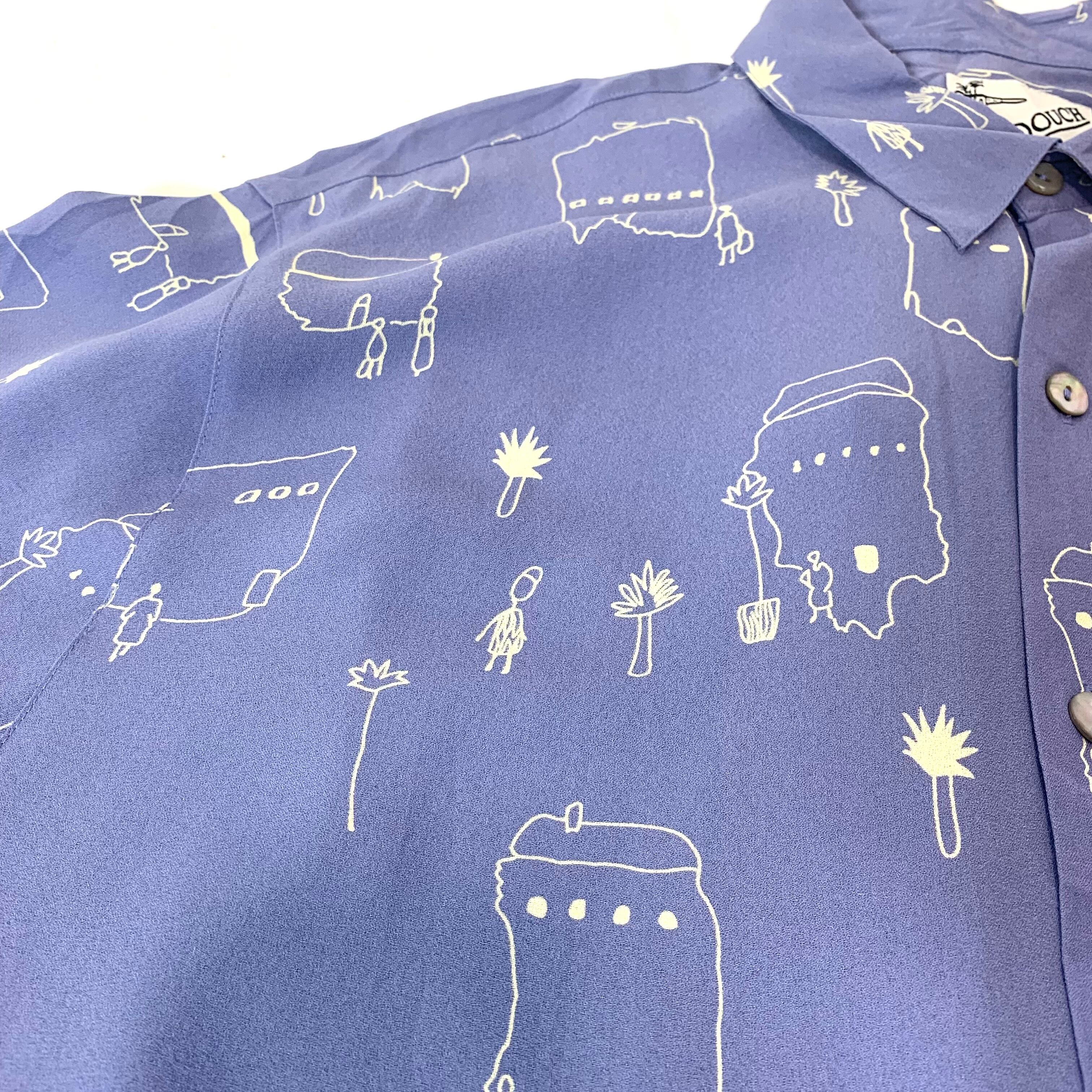 vintage old 80s 90s Deadstock GOOUCH Silk Shirt Art Patterned Shirt Box Shirt 半袖 デッドストック グーチ シルクシャツ 柄シャツ ボックスシャツ パープル×ホワイト メンズ レディース SIZE XL ビンテージ ヴィンテージ