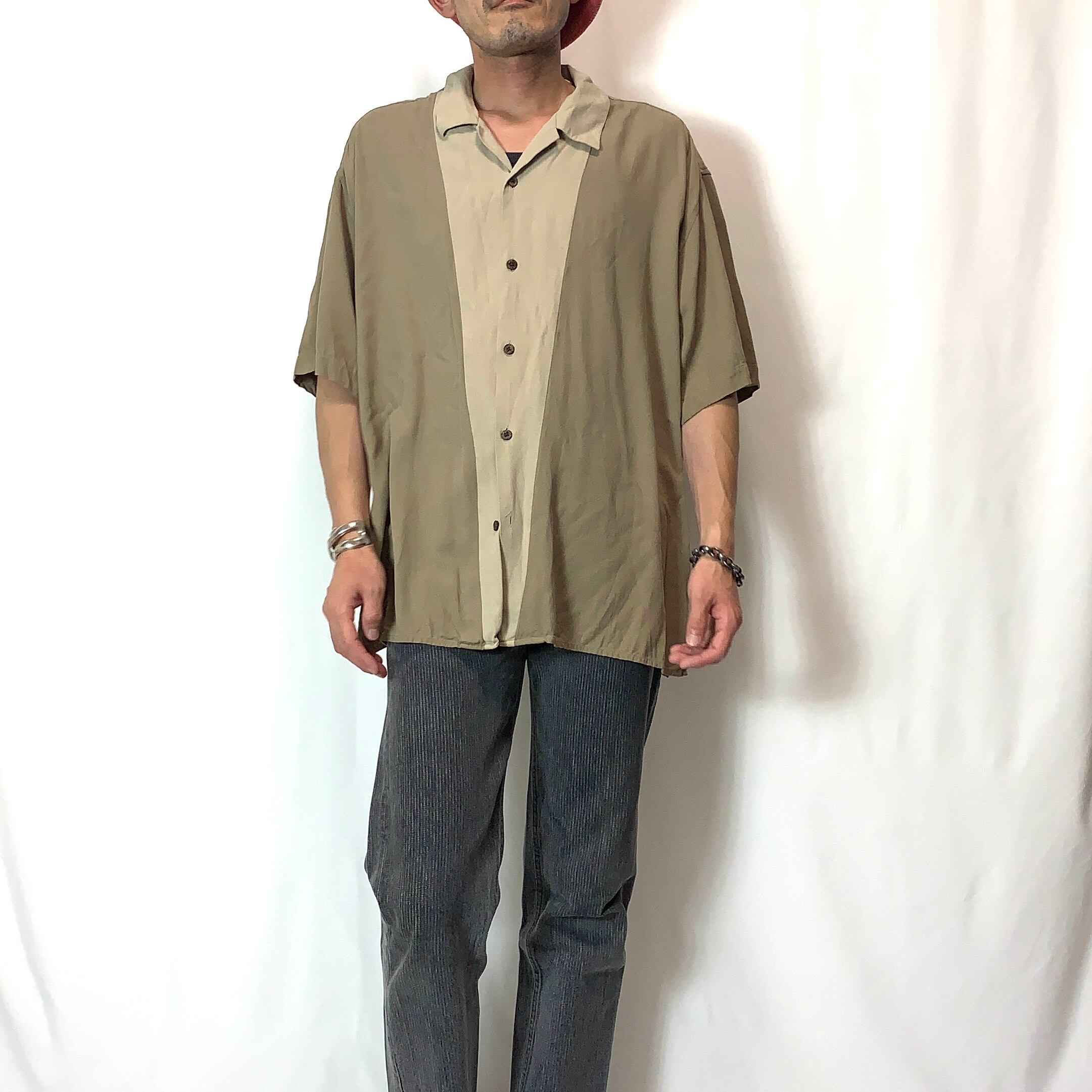 vintage old 90s Silk Switching Shirt Open Collar Shirt Box Shirt 半袖 シルク切り替えシャツ オープンカラーシャツ カーキツートン メンズ レディース SIZE XXL ビンテージ ヴィンテージ