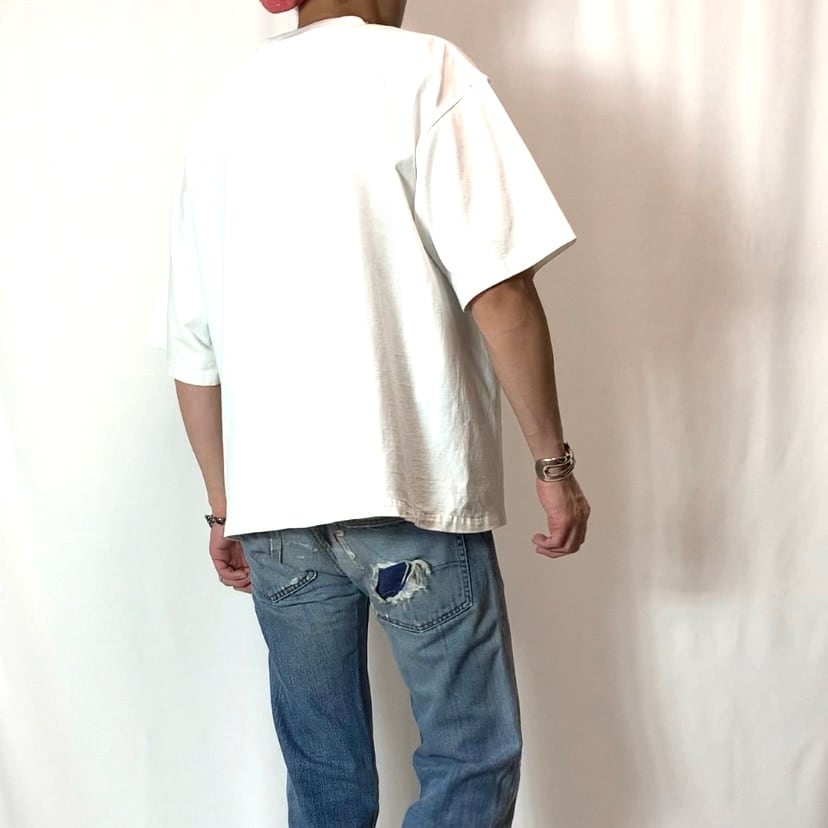 vintage 90s print T-shirt Hand Spray Paint Peach プリントTシャツ バンドスプレーペイント ピーチ ヘビーコットン メンズ レディース ホワイト 白 ビンテージ ヴィンテージ