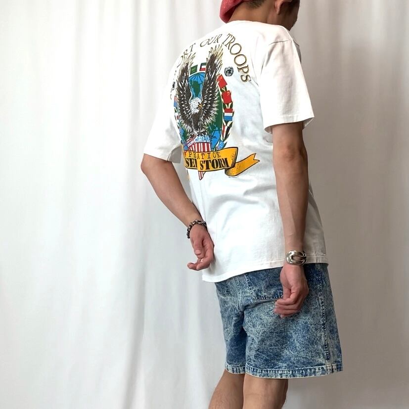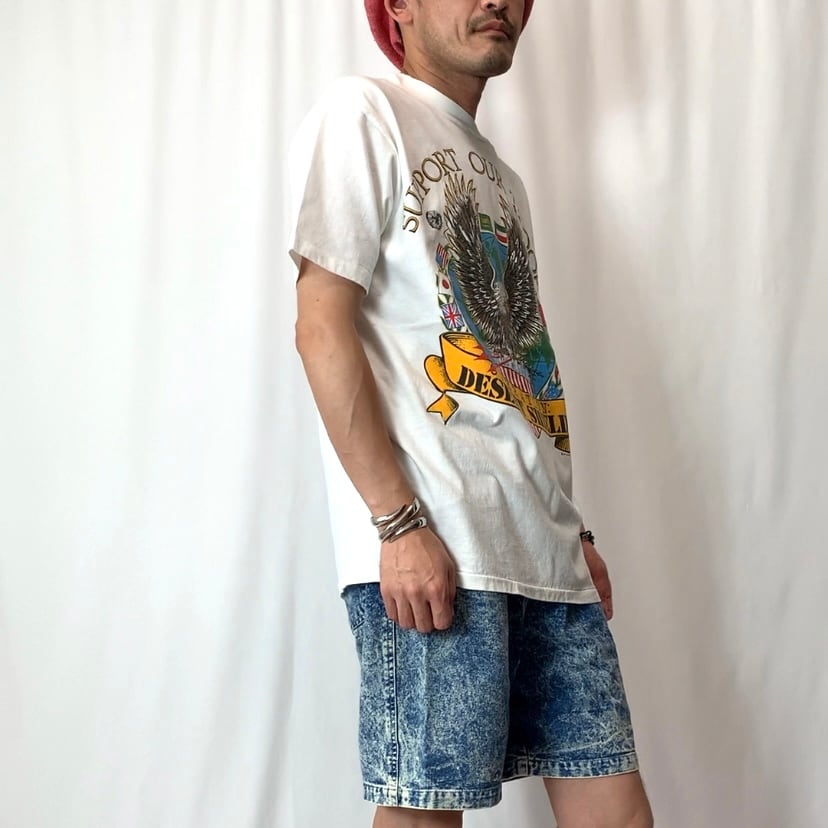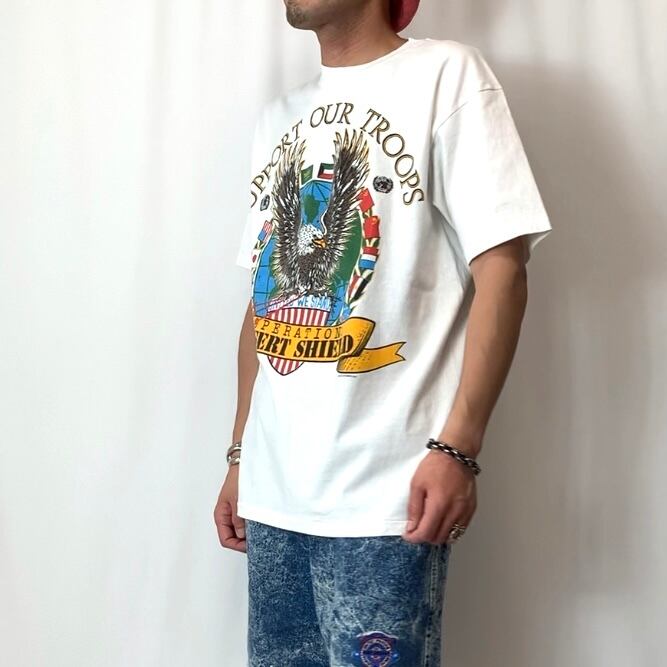 vintage 90s print T-shirt Operation Desert Shield Hanes BEEFY MADE IN USA プリントTシャツ ヘインズ アメリカ製 湾岸戦争 砂漠の盾作戦 メンズ レディース ホワイト 白 size XL ビンテージ ヴィンテージ
