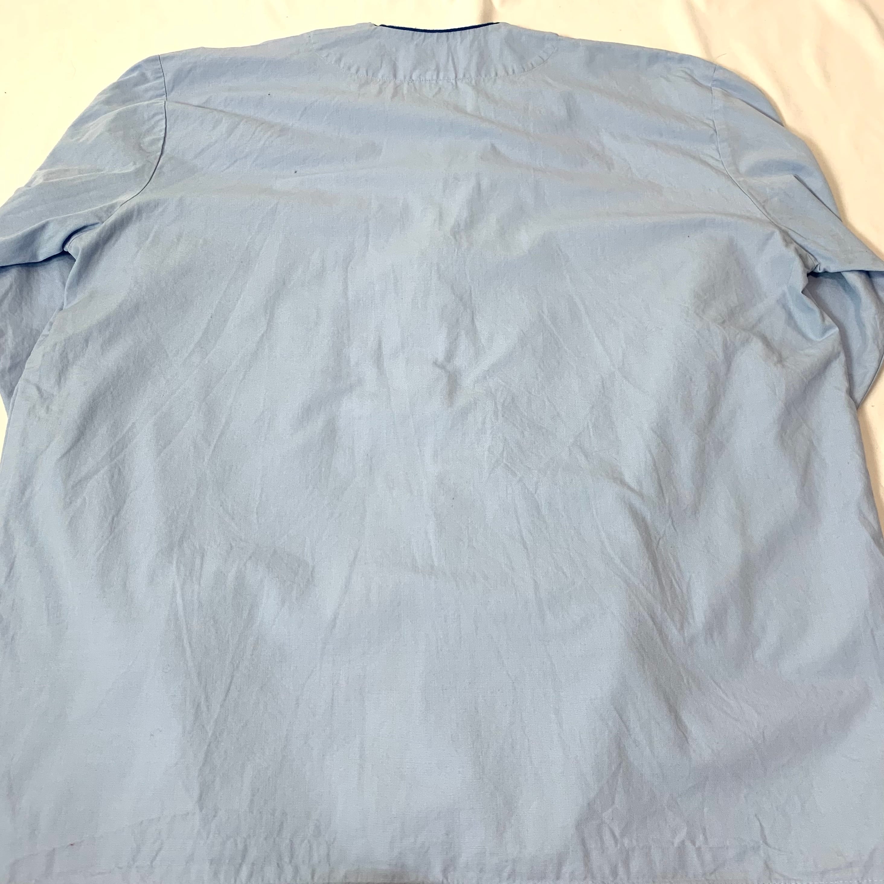 vintage old 90s euro Hospital Jacket ホスピタルジャケット シャツジャケット サックス×ブルー メンズ レディース size 54 ビンテージ ヴィンテージ ノーカラー