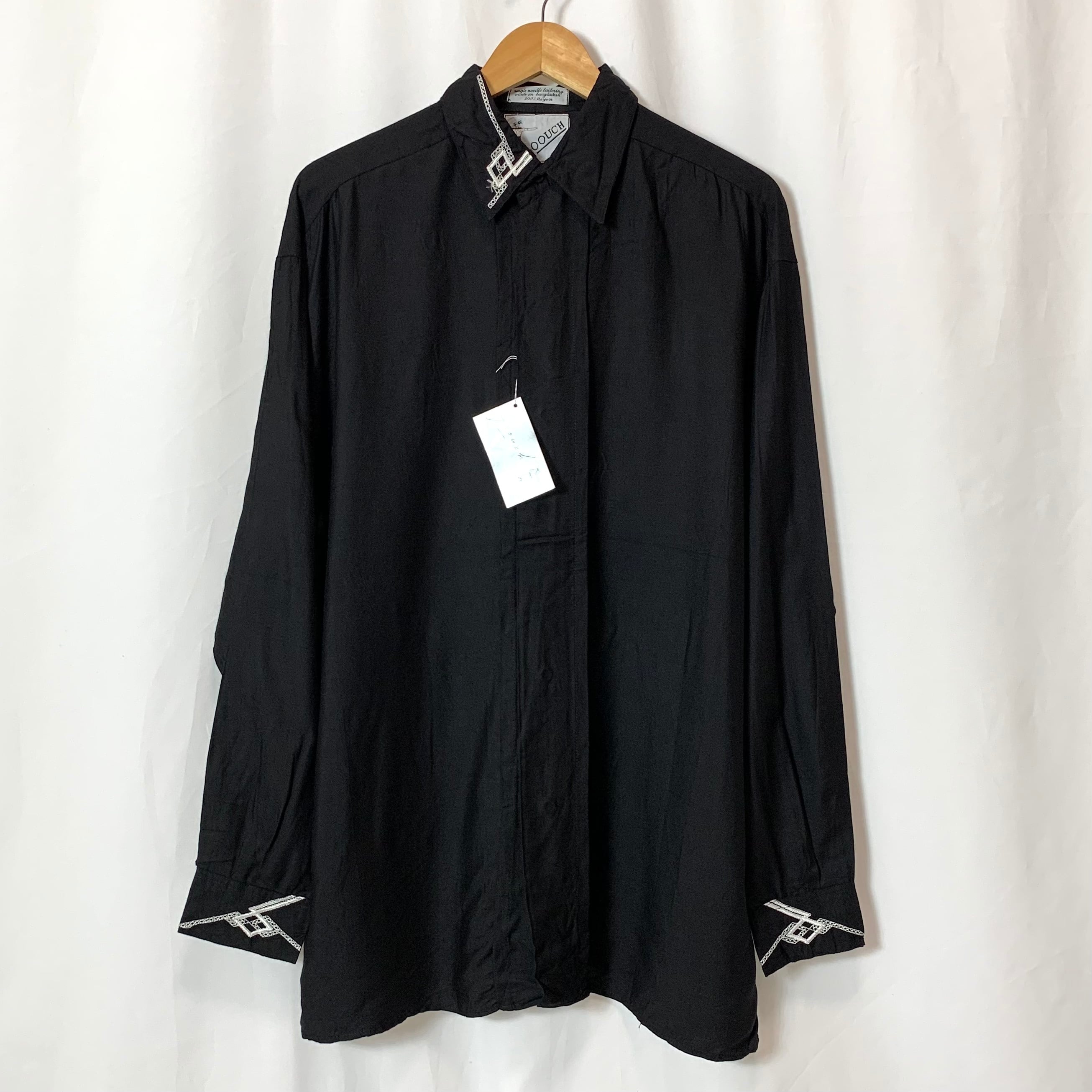 "GOOUCH" vintage old 80s 90s Deadstock Rayon Embroidery Shirt デッドストック グーチ レーヨン刺繍シャツ メンズ レディース SIZE M ビンテージ ヴィンテージ ブラック