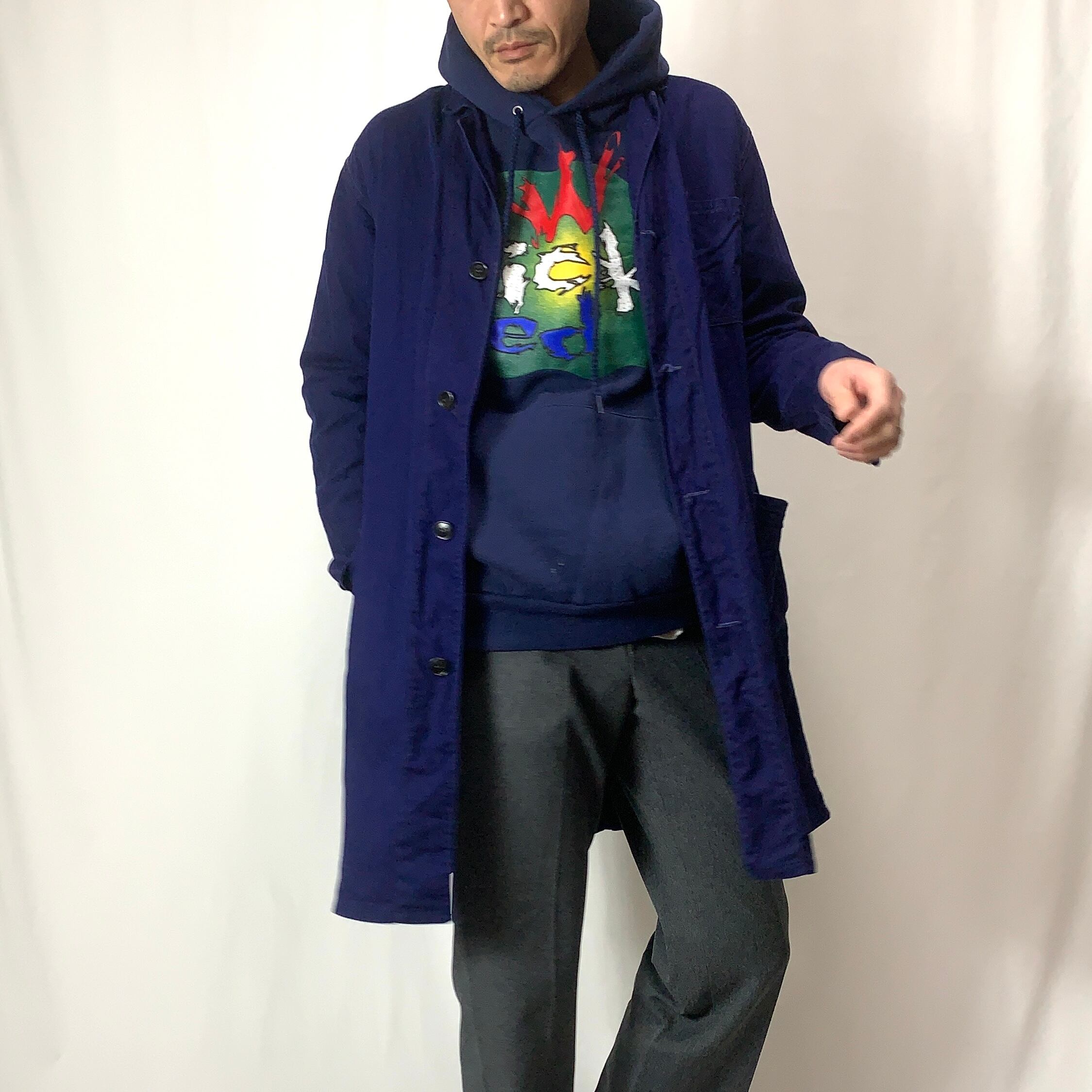 vintage old 90s Hanes print sweat parka Cure風 ヘインズ プリントスウェットパーカー メンズ レディース ビンテージ ヴィンテージ ネイビー size XL