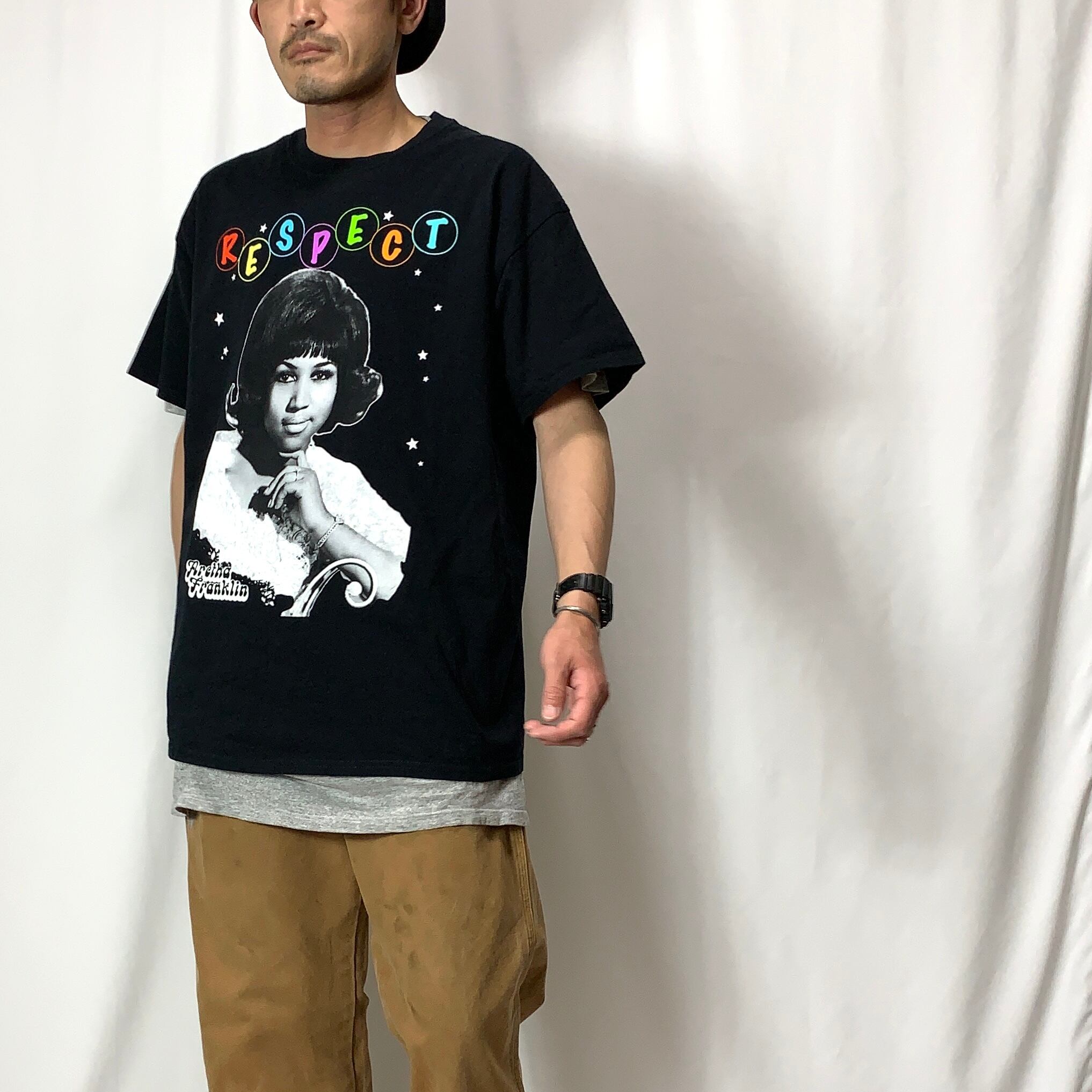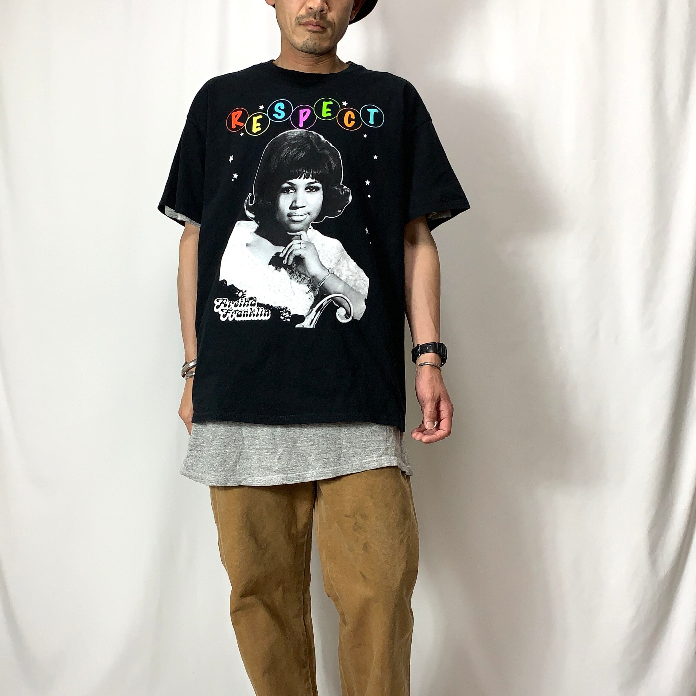 old ARETHA FRANKLIN print T-shirt BAND T-shirt アレサ フランクリン プリントTシャツ バンドTシャツ メンズ レディース ブラック 黒 size L ビンテージ ヴィンテージ
