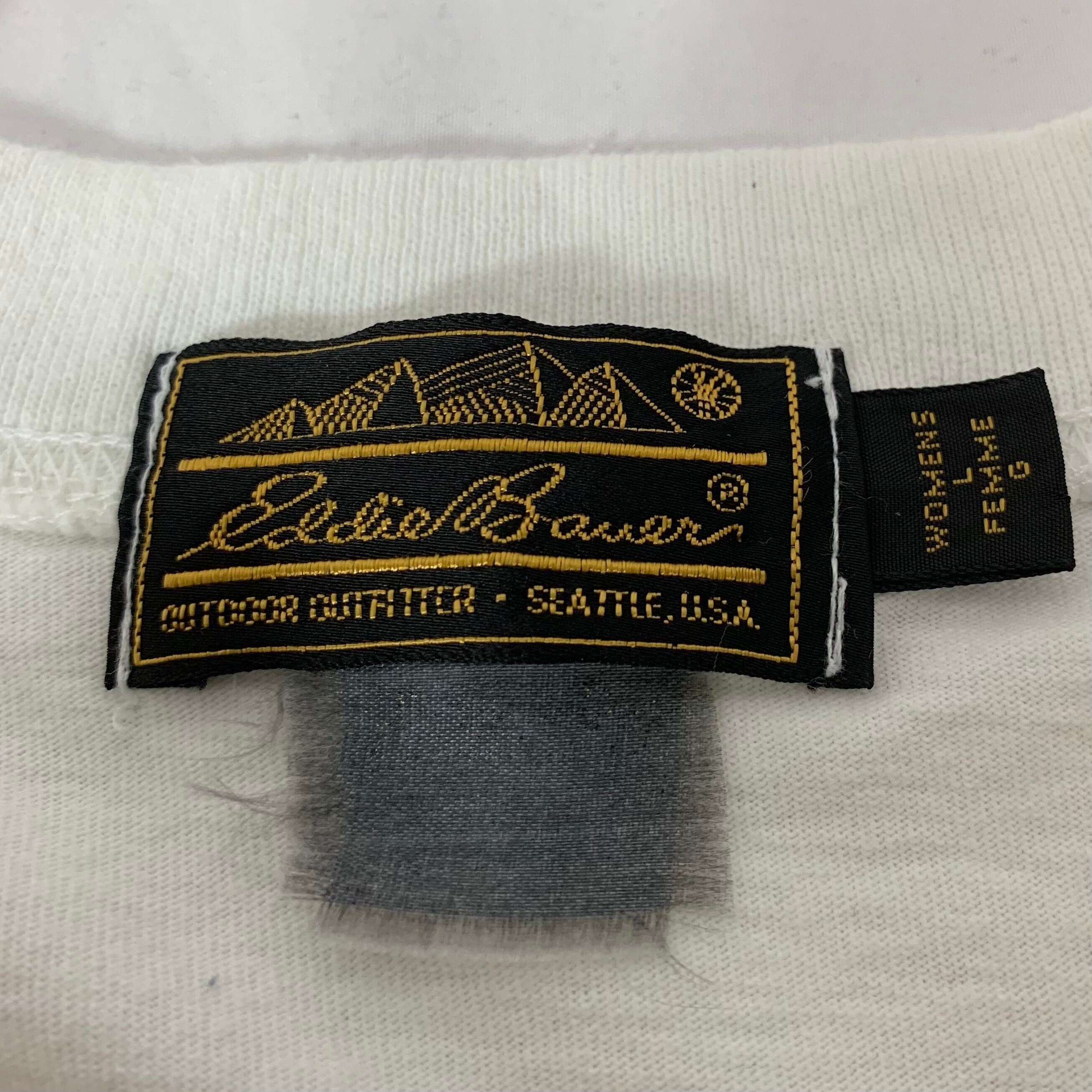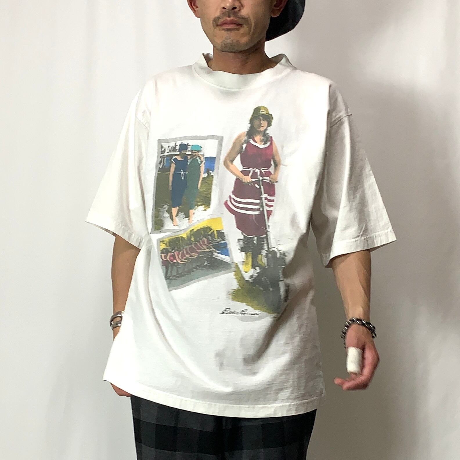 vintage 80s photograph print T-shirt Eddie Bauer フォト プリントTシャツ エディバウァー 黒タグ メンズ レディース ホワイト 白 size L ビンテージ ヴィンテージ
