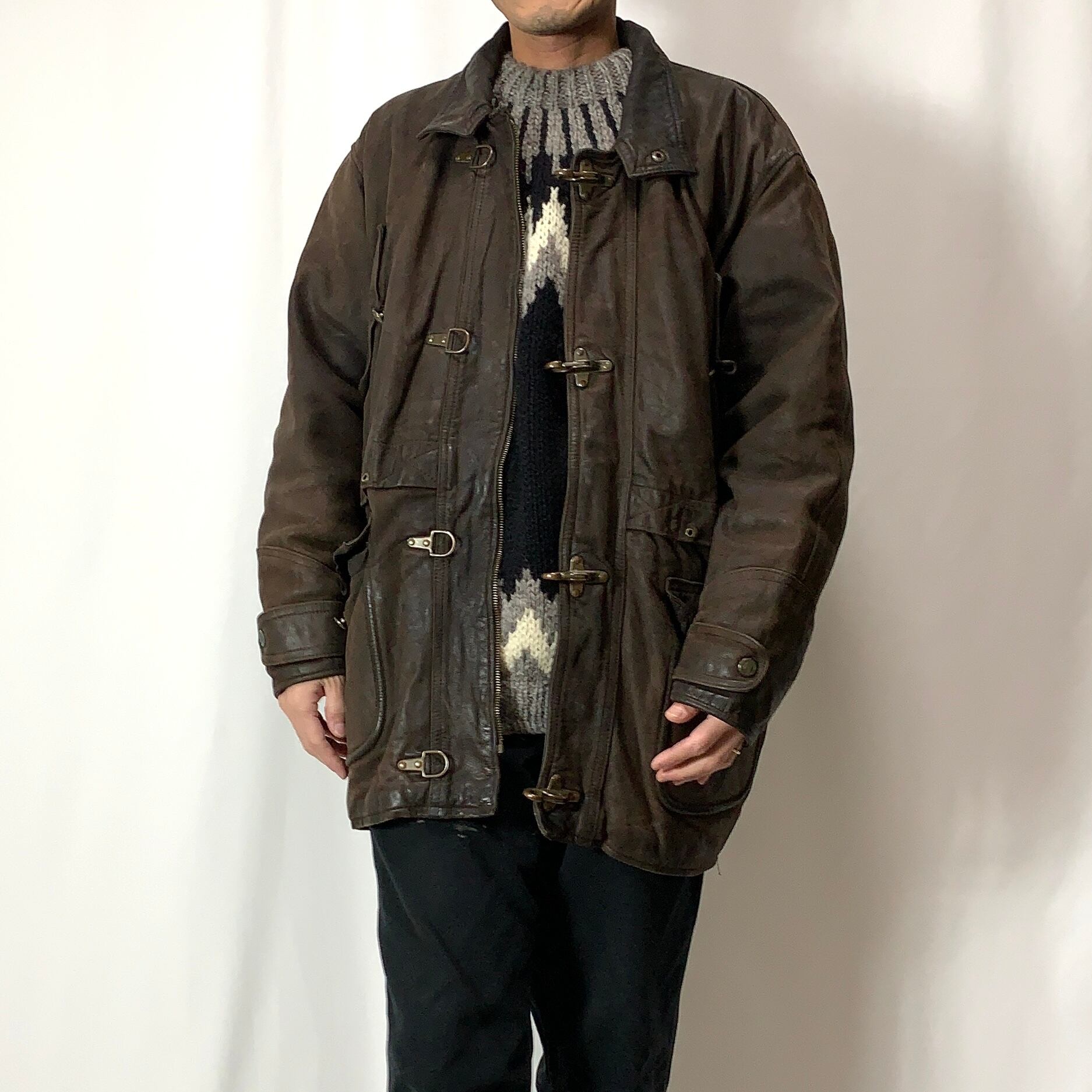 vintage old Italy 90s Fireman Leather Jacket レザーファイヤーマンジャケット メンズ レディース ブラウン ビンテージ ヴィンテージ