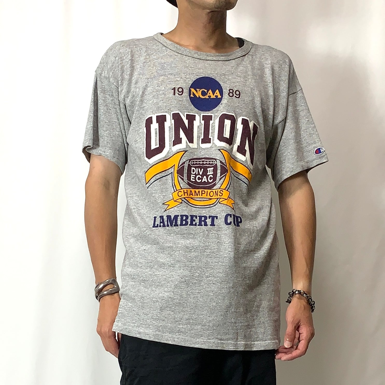 vintage 80s Champion print T-shirt 88/12 MADE IN USA チャンピオン プリントTシャツ トリコタグ アメリカ製 メンズ レディース フェザーグレー size L ビンテージ ヴィンテージ