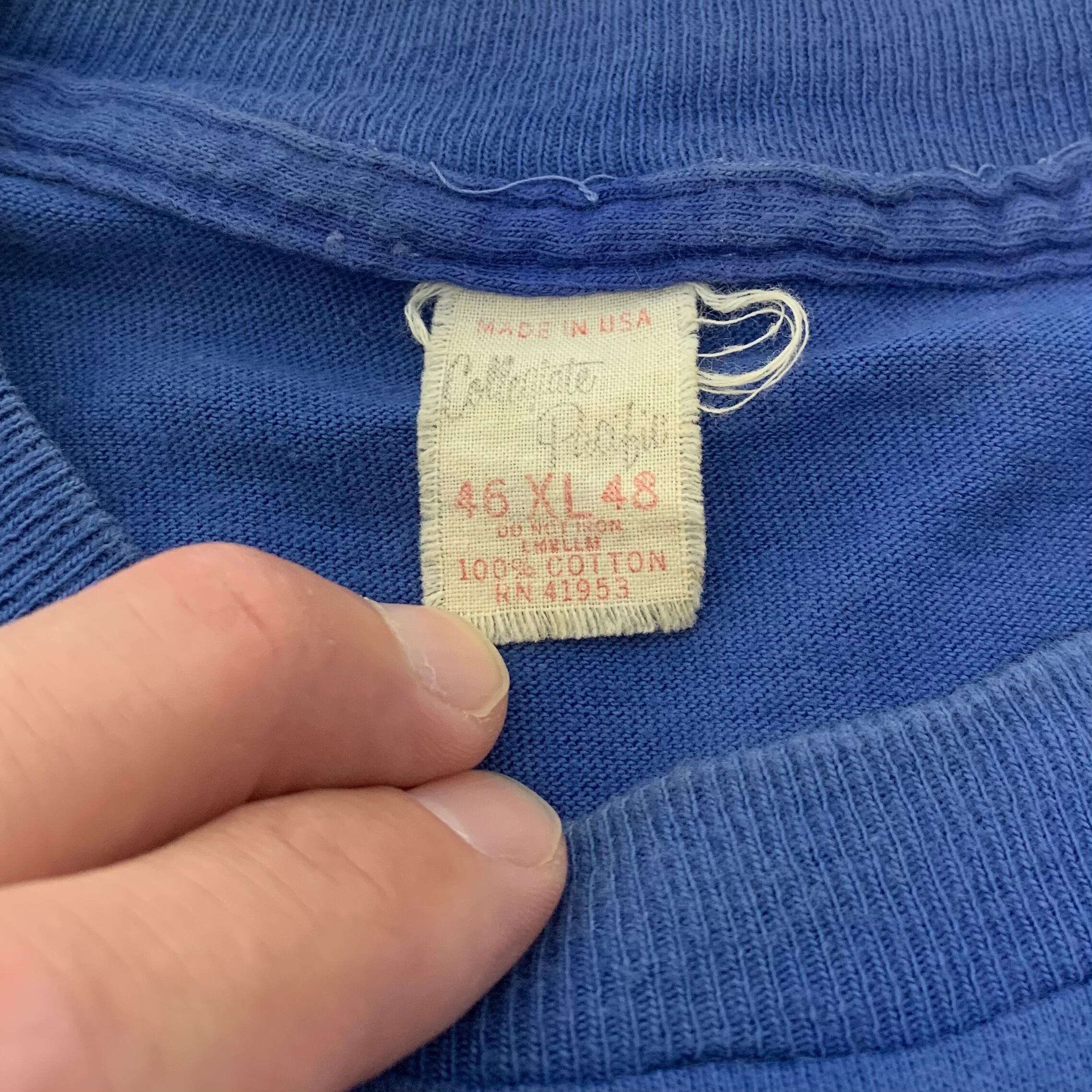 vintage 70s Collegiate Pacific print T-shirt MADE IN USA カレッジエイト パシフィック プリントTシャツ アメリカ製 メンズ レディース ブルー size XL ビンテージ ヴィンテージ